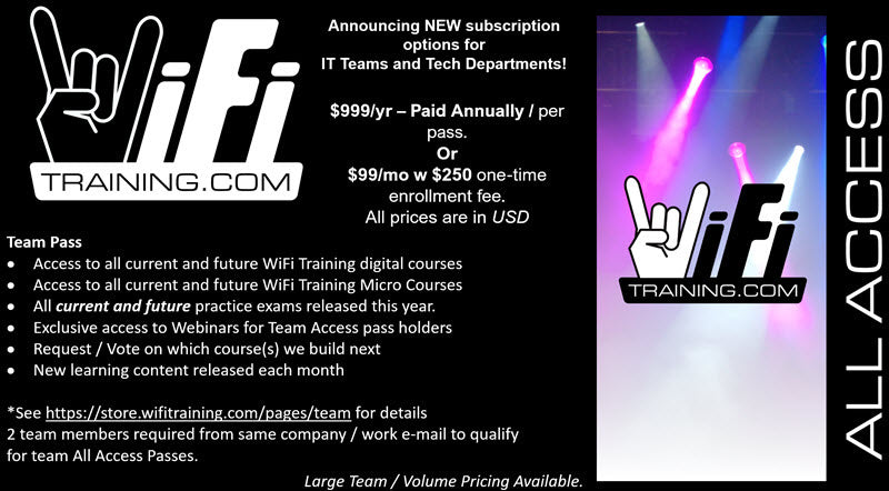 Welcome to the new All-Access pass for IT Departments and technical teams by WiFi Training. By enrolling in our all-access plan you and your colleagues will get access to all of our